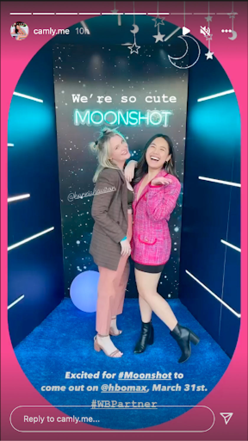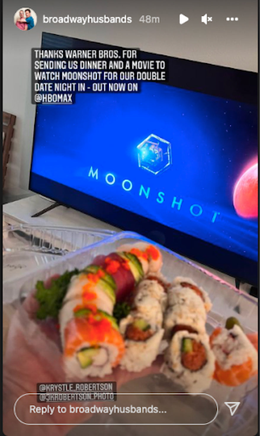 The MOONSHOT campaign slightly shifted with the addition of a special Los Angeles screening on March 23, 2022. The NEWHOUSE team seamlessly confirmed 10 additional LA-based influencer couples. Influencers posted about their date night theater experience on the night of the screening (March 23, 2022) that showcased their fandom and excitement in support of the film’s forthcoming release.